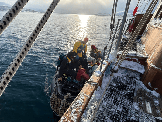 Wir chartern eine wunderschöne Yacht. Die Havella ist ein norwegisches Schiff, das speziell für wissenschaftliche Expeditionen in Spitzbergen gebaut wurde. Wir werden von Fjord zu Fjord segeln (motoren) und die fantastische Landschaft Norwegens mit den Skiern erkunden.