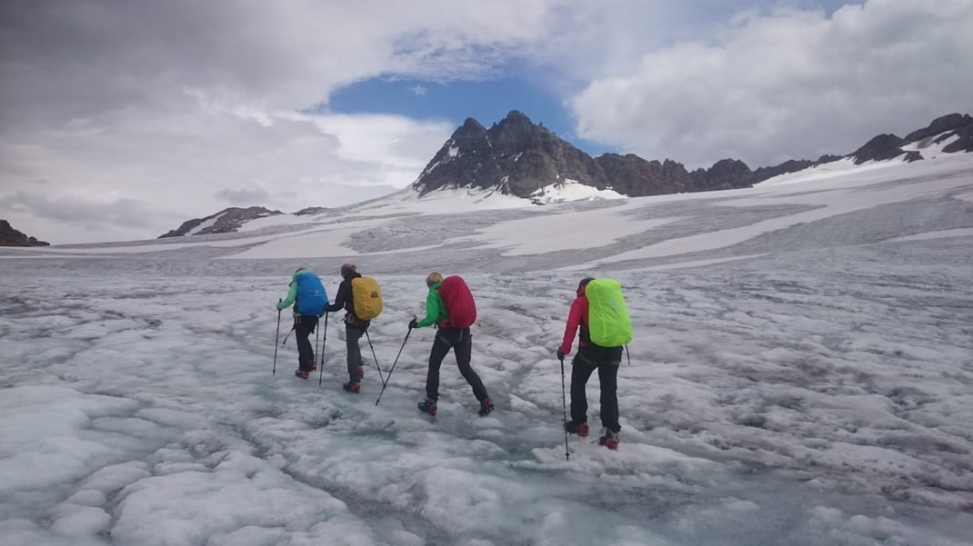 Langes alpines Gletschertrekking über die Baltschiederlicka und Gredetschjoch zur Oberaletschhütte. Vom Gredeschjoch bestaunen wir die Aussicht auf das Schinhorn und das Aletschhorn. Das Trekking beinhaltet drei kurze, klettersteigähnliche Aufstiege und insgesamt 5 Gletschertraversierungen: Innre Baltschiedergletscher, Gredetschgletscher, Beichgletscher, Oberaletschgletscher und zum Schluss den Grossen Aletschgletscher.