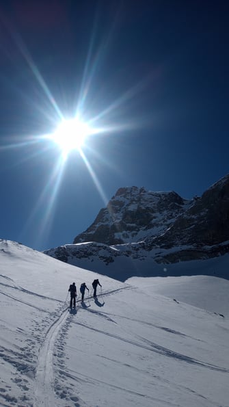 Touren mit den schönsten Abfahrten in den Berner Alpen. Übernachtet wird in hochgelegenen Hütten mitten in Eis und Schnee.